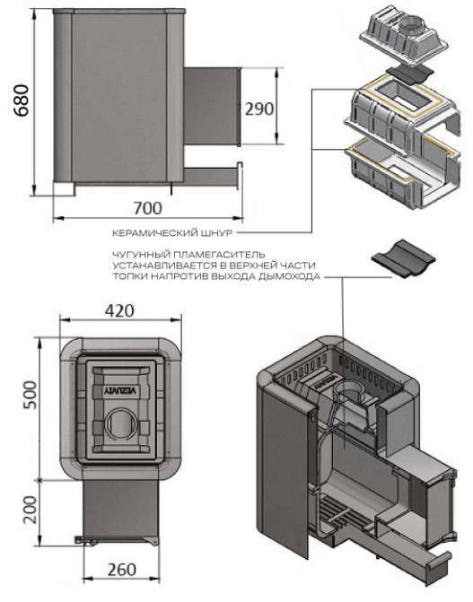 Материал топки: Жаростойкий чугун (ГОСТ 1412-85)