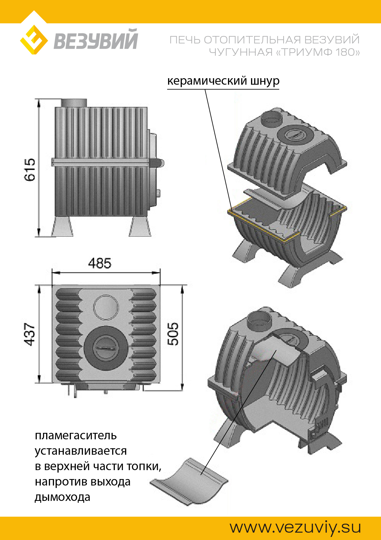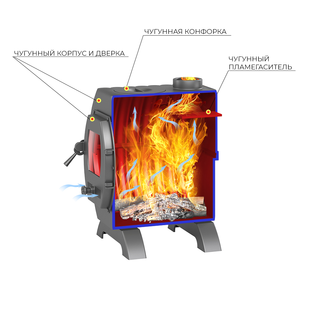 Материал топки:: жаростойкий чугун (ГОСТ 1412-85)